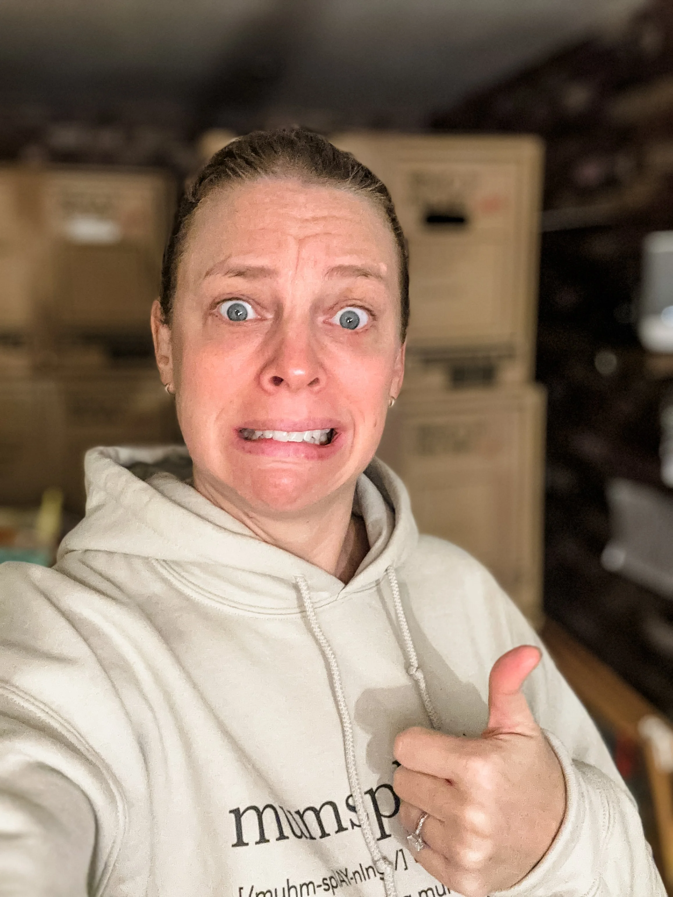 Because the floors in the new house weren’t down yet, we weren’t actually able to put anything into it on moving day, so every single box - all fifty of them - got stacked to the rafters in the (thankfully massive) double garage, with all our furniture piled in front.